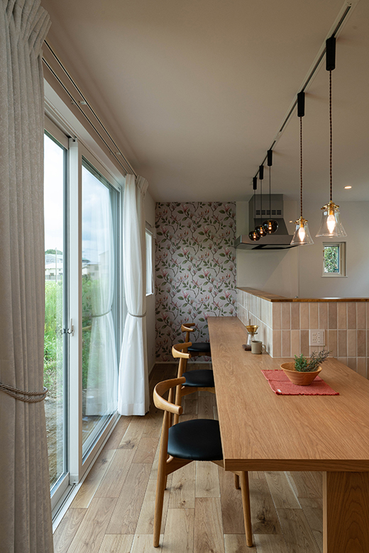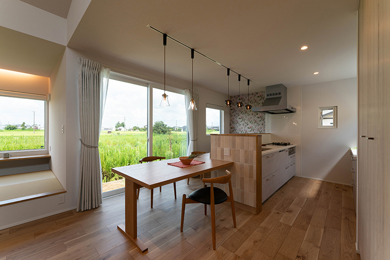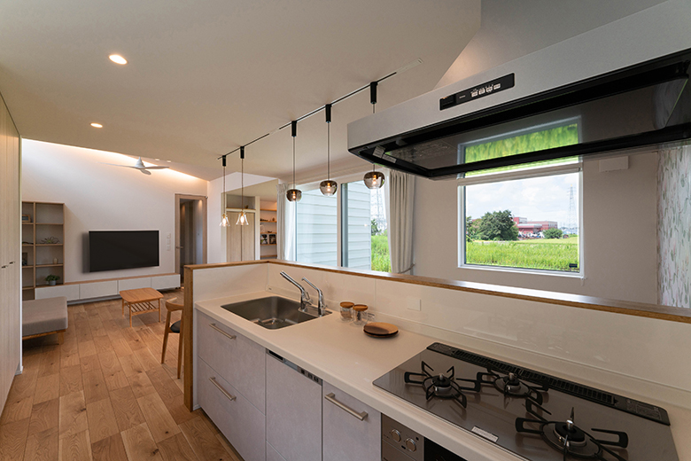 LDKはあえて北向きに配置し、やわらかな自然光を取り入れながら、キッチンからも美しい景色が楽しめるように。