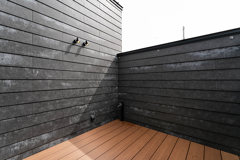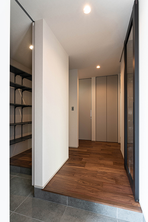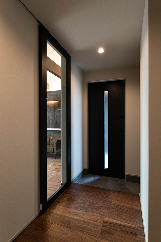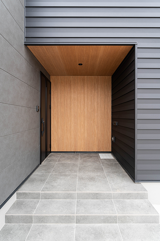 内と外をつなぐ無垢のセメント板が、静かな存在感を放ちながら、住まいに落ち着きと表情をもたらす。