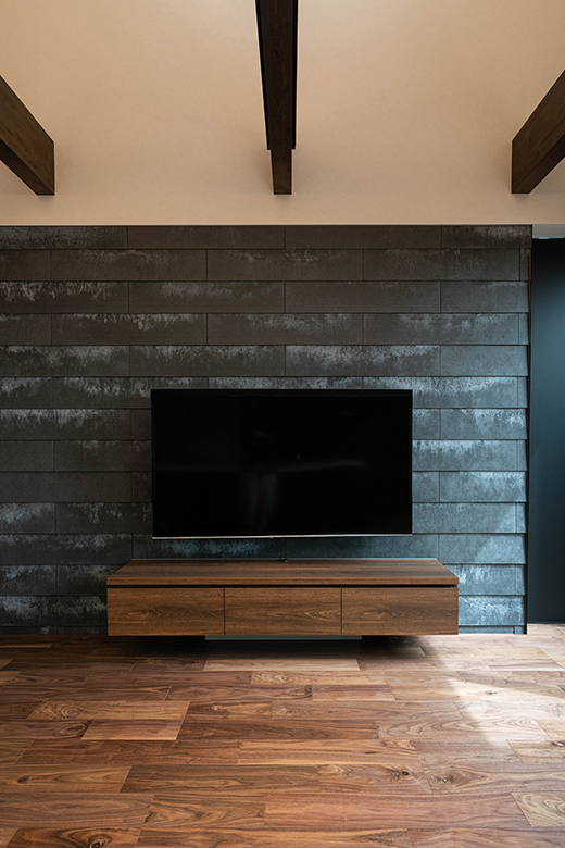 ダイニングにはヴィンテージチークの羽目板を採用し、食卓を包み込むような温もりと深みのある表情をプラス。