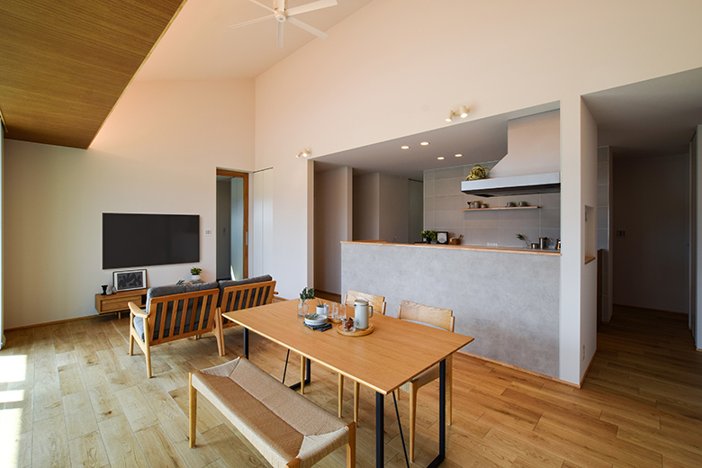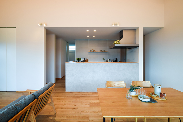 LDKを動線の中心に配置することで、家族が集まりやすく、のびのびとした暮らしを叶えた。
