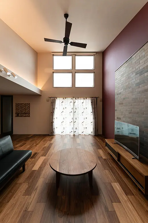 ここまで大きな吹き抜けでは、作り方を失敗すると天井が暗くなり圧迫感がでてくるため、逆に狭く感じることがあります。